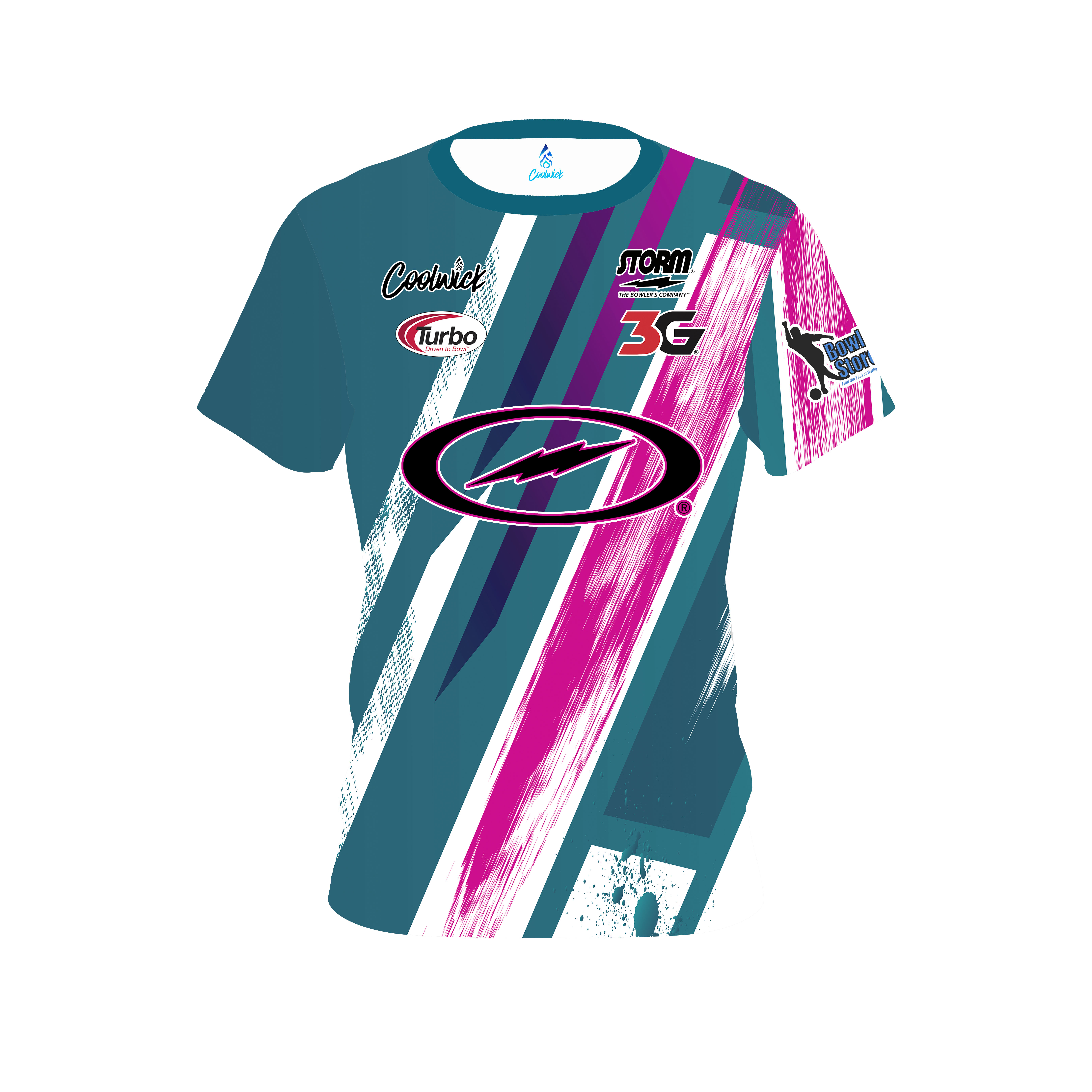 Storm Dom Barrett Teal Pink Paint CoolWick Bowling Jersey