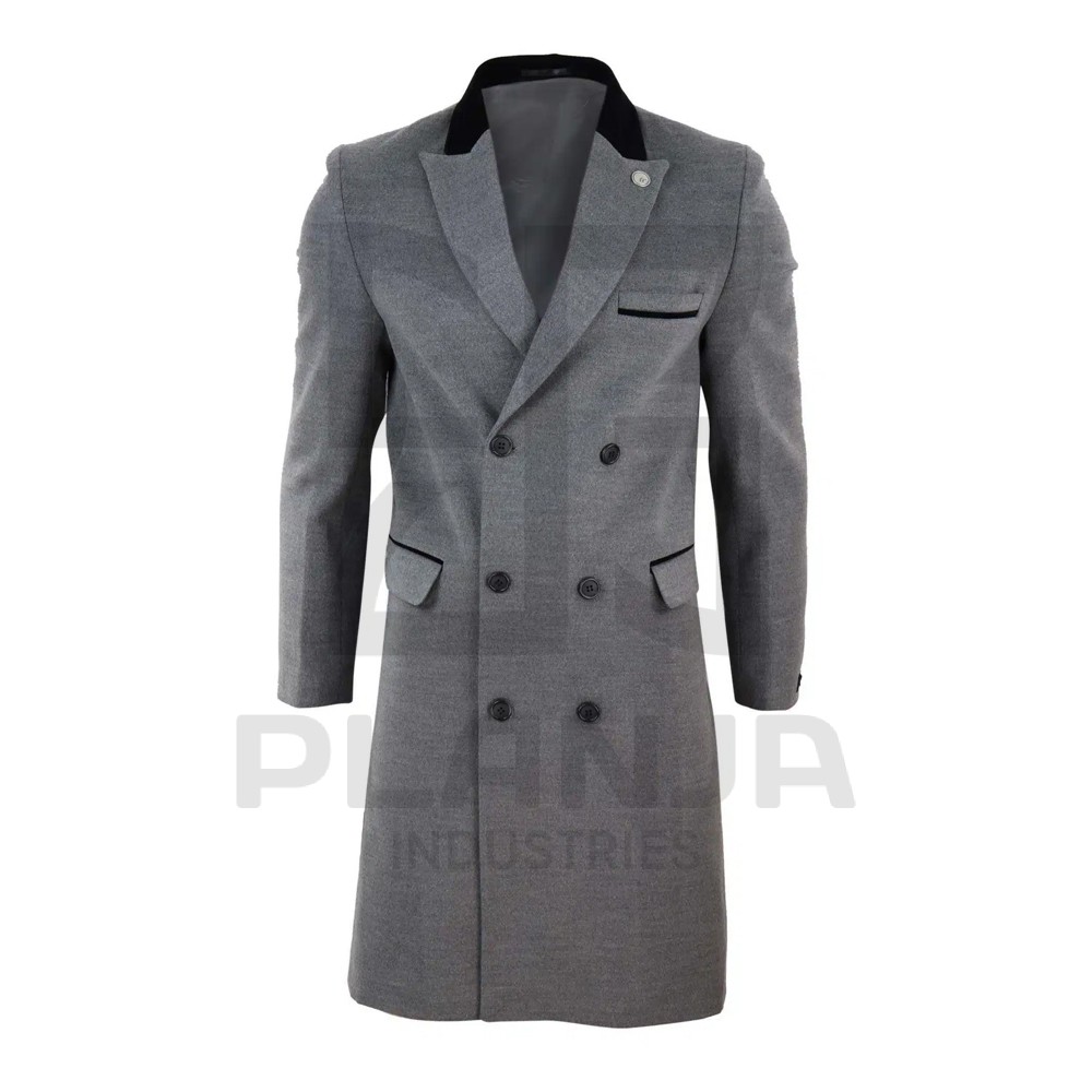 Men’s Long Double Breasted Grey Overcoat Outerwear